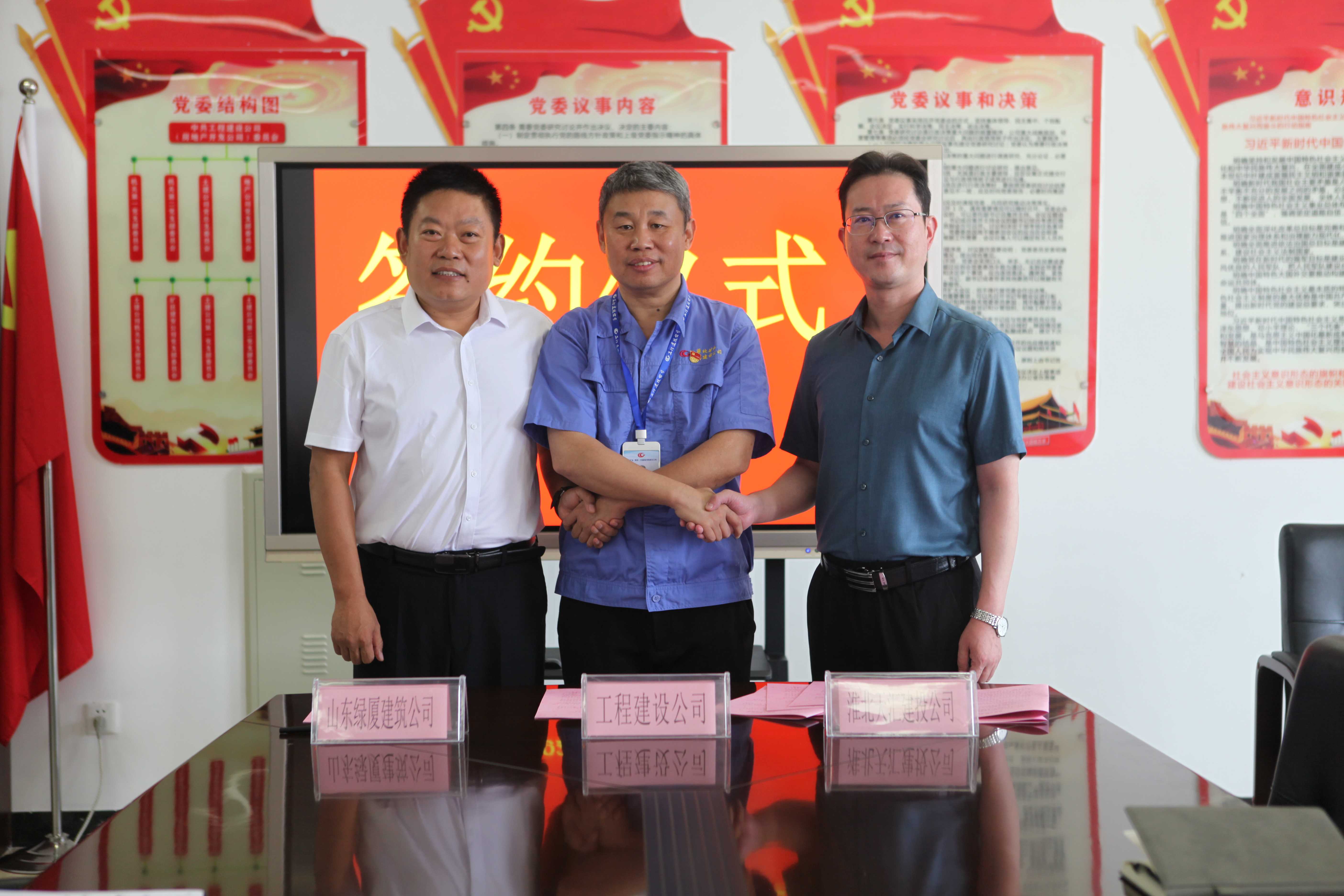 7月30日上午,集團公司與淮北礦業(集團)工程建設有限責任公司、山東綠廈建筑科技有限公司就合資成立新公司簽署《投資合作意向書》,集團公司董事長李飛出席此次簽約儀式。