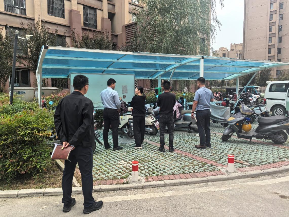 隨后,任婷婷調研物業部門自營的星洲國際城小區,現場查看小區內物業服務及充電樁項目運營情況,聽取相關負責人匯報。